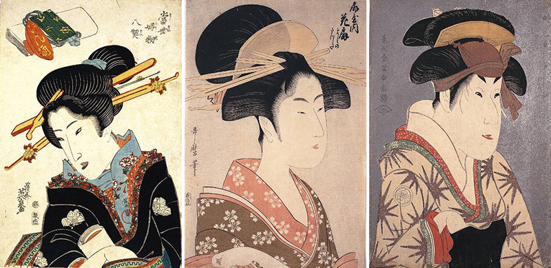 Бидзинга (изображение красавиц), один из поджанров укиё-э, появился в середине 17 века. Художники любили создавать целые серии портретов, объединённые общей темой или ассоциацией: например, сравнивали ту или иную красавицу с одной из примечательных городских панорам или временем года.